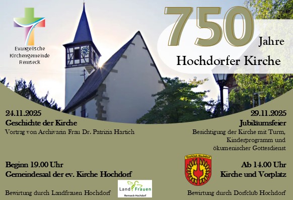 Herzliche Einladung zu der Jubiläumswoche 750 Jahre Wendelinskirche in Hochdorf – Montag 24.11.2025 um 19:00 Uhr Geschichte der Wendelinskirche…